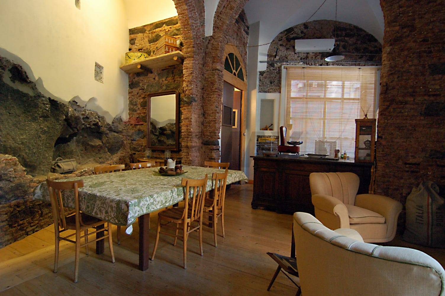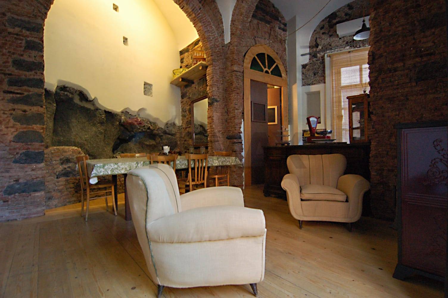 Ampio e luminoso open space nel cuore del centro storico di Catania, composto da tre vani comunicanti: dall’androne condominiale, attraverso un portone di accesso al loft, si accede nel soggiorno, segue uno spazio pranzo e infine la cucina; un bagno e una lavanderia completano il piano terreno dell’immobile. Il comodo soppalco, realizzato sul soggiorno e sulla lavanderia, ospita una camera da letto, che potrebbe essere resa più comoda dalla realizzazione di un piccolo bagno e di cabina armadio, sopra la lavanderia del piano sottostante. L’intera superficie è soppalcabile, offrendo la possibilità di dilatare lo spazio dell’immobile, che può essere rifunzionalizzato in vari modi, a seconda del progetto che si vuole realizzare, che può essere anche di tipo commerciale.