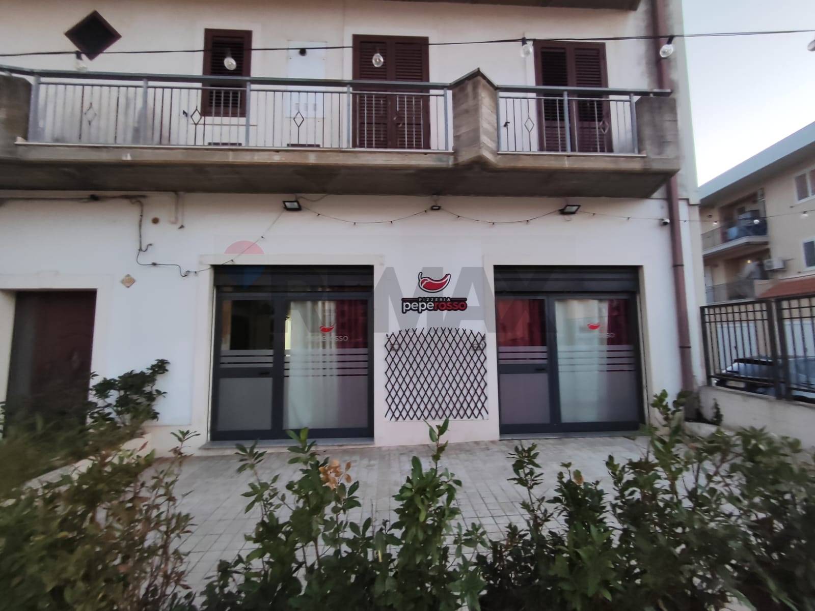 Disponiamo la vendita a Floridia di 2 locali commerciali al pian terreno di un edificio indipendente, attualmente locati ed adibiti ad attività commerciale come pizzeria.