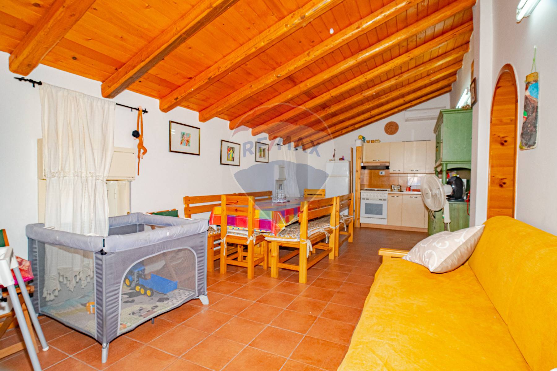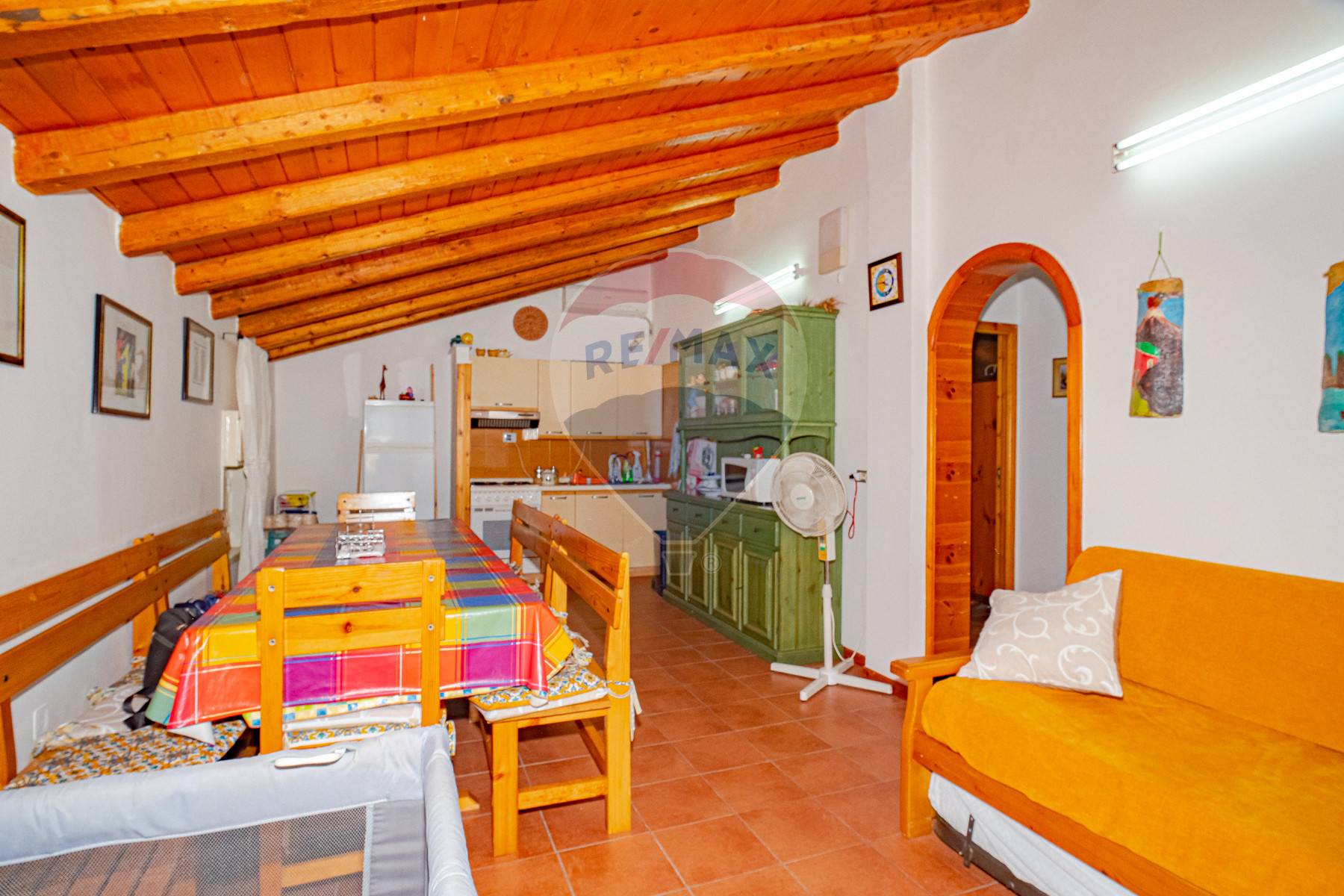 ci accoglie un ampio salone con angolo cucina e zona giorno,