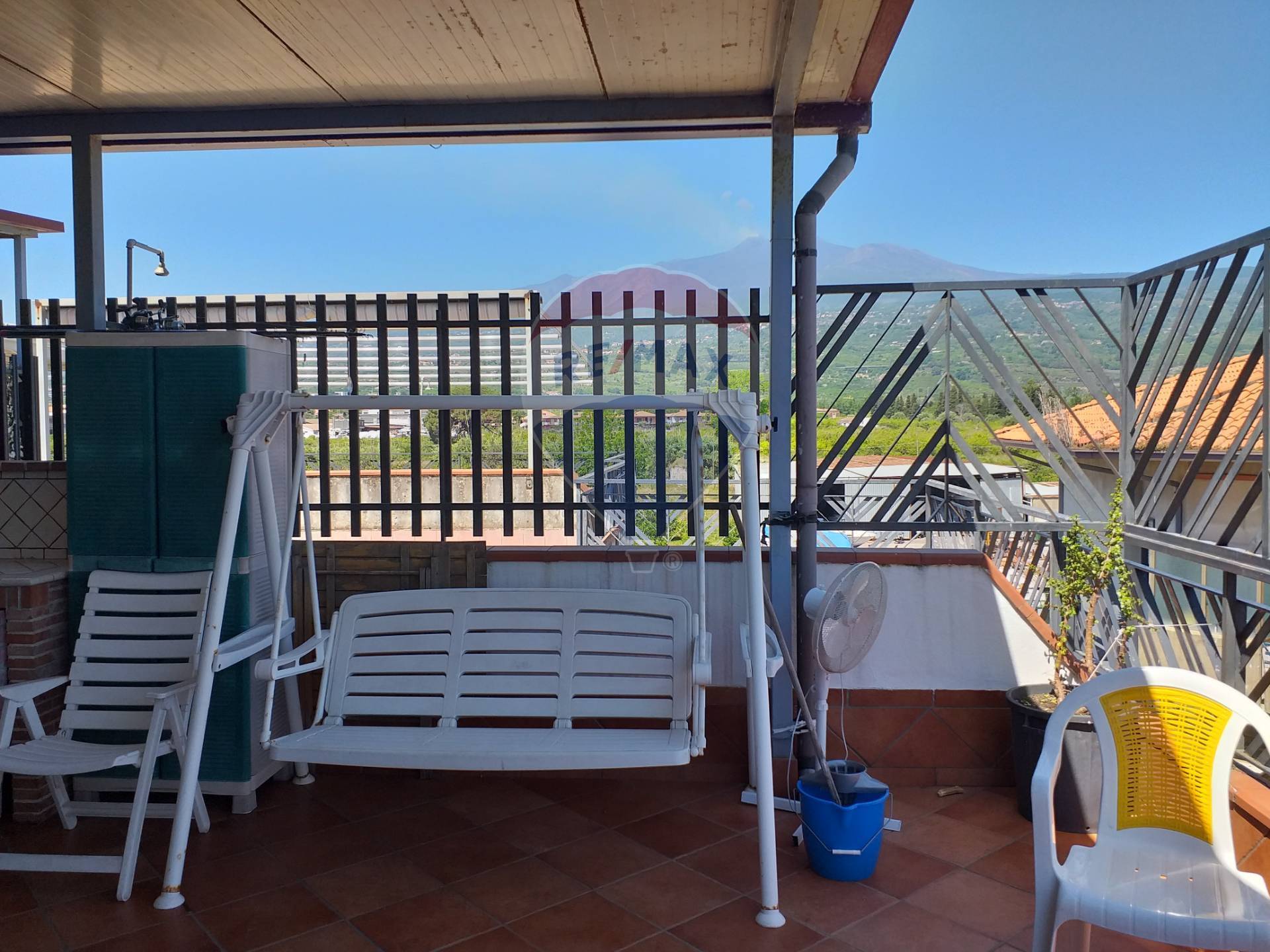 L’appartamento è composto da una zona notte con otto posti letto, cucinino, bagno e da una terrazza coperta ben rifinita ad uso cucina-soggiorno con vista Etna