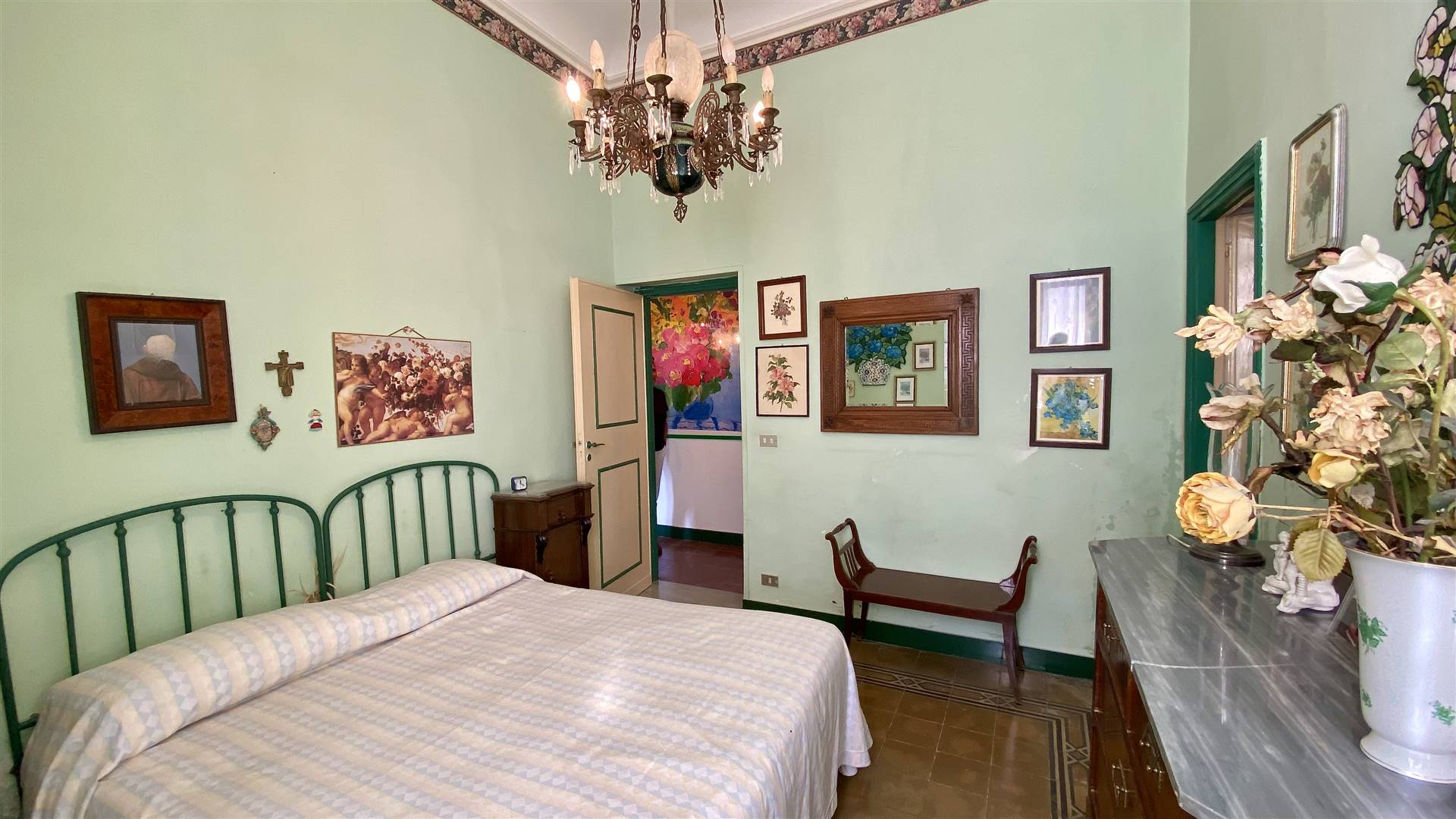 L’immobile si trova al piano terra di pertinenza di un palazzo storico, composto da ampio terrazzo da cui si accede ad un ampio salone che funge da disimpegno per la zona giorno e la zona notte, due camere da letto complete di servizi, ripostiglio e cucina con accesso diretto ad un terrazzo coperto. L’immobile gode di un giardino esclusivo di 1749 mq corredato da alberi ad alto fusto. Classe Energetica: G