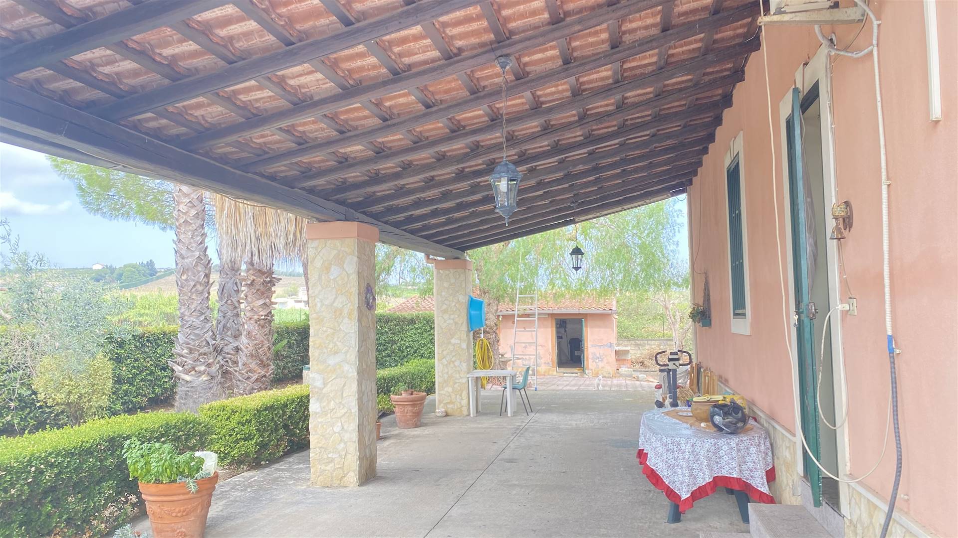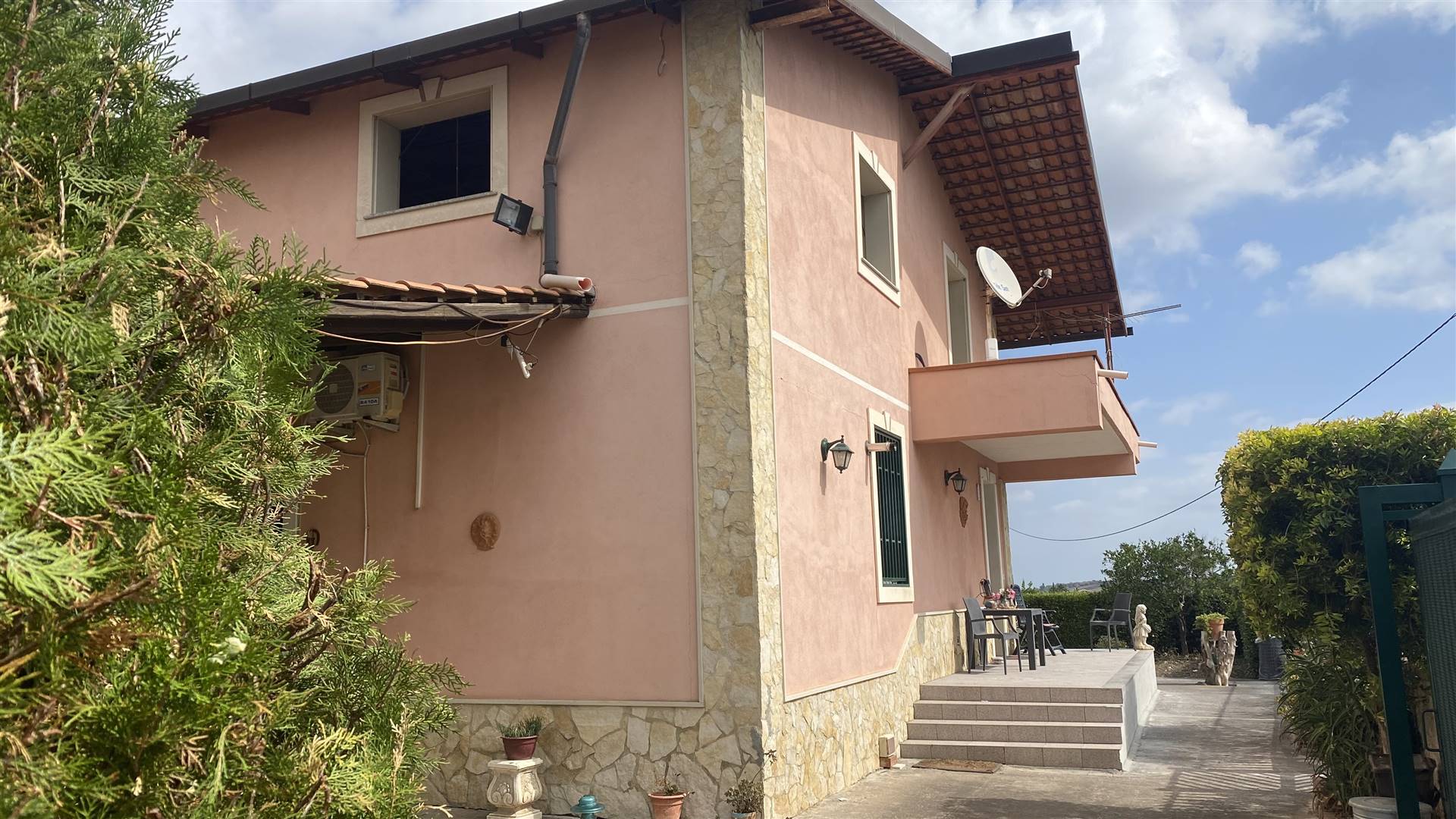 Bielle Immobiliare di Rocco Bassetta propone a Scordia in C.da Rasoli (zona industriale di Scordia) una Villa indipendente con ampio giardino di pertinenza di mq 1400. La villa si compone su due elevazioni: al piano terra ampio soggiorno – cucina, tre camere da letto, due bagni ( di cui ancora uno non completo) e ripostiglio. Al primo piano disimpegnato da una scala esterna vi è un ampio appartamento in corso di costruzione di mq 130. L’immobile è completo di un ampia veranda attrezzata, altro piccolo caseggiato con cucina e forno rustico, dispone di servizio idrico comunale, e all’interno del lotto vi è un pozzo trivellato di cui si attinge l’acqua per irrigare il giardino. Cisterna di 30.000 litri d’acqua. Classe Energetica: G