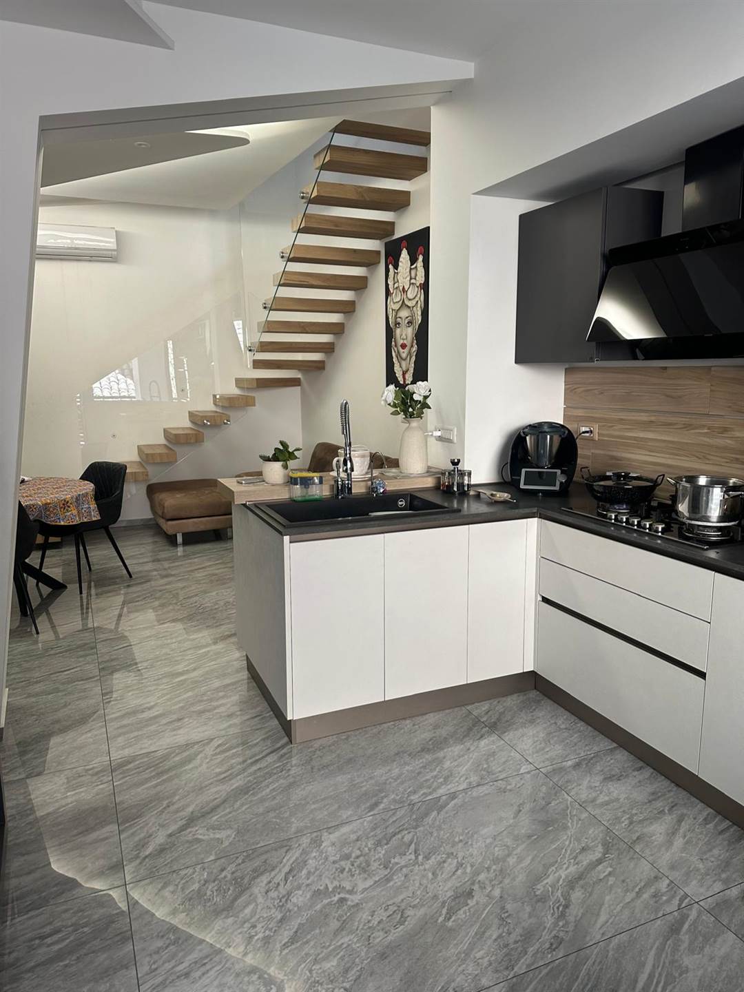 Al primo piano, vi accoglie un ampio soggiorno doppio, ideale per momenti di relax in famiglia o serate con amici, e una cucina abitabile dove potrete cucinare e condividere pasti insieme. Il secondo piano è dedicato alla zona notte, con tre luminose camere da letto e tre bagni, offrendo privacy e comfort per ogni membro della famiglia.