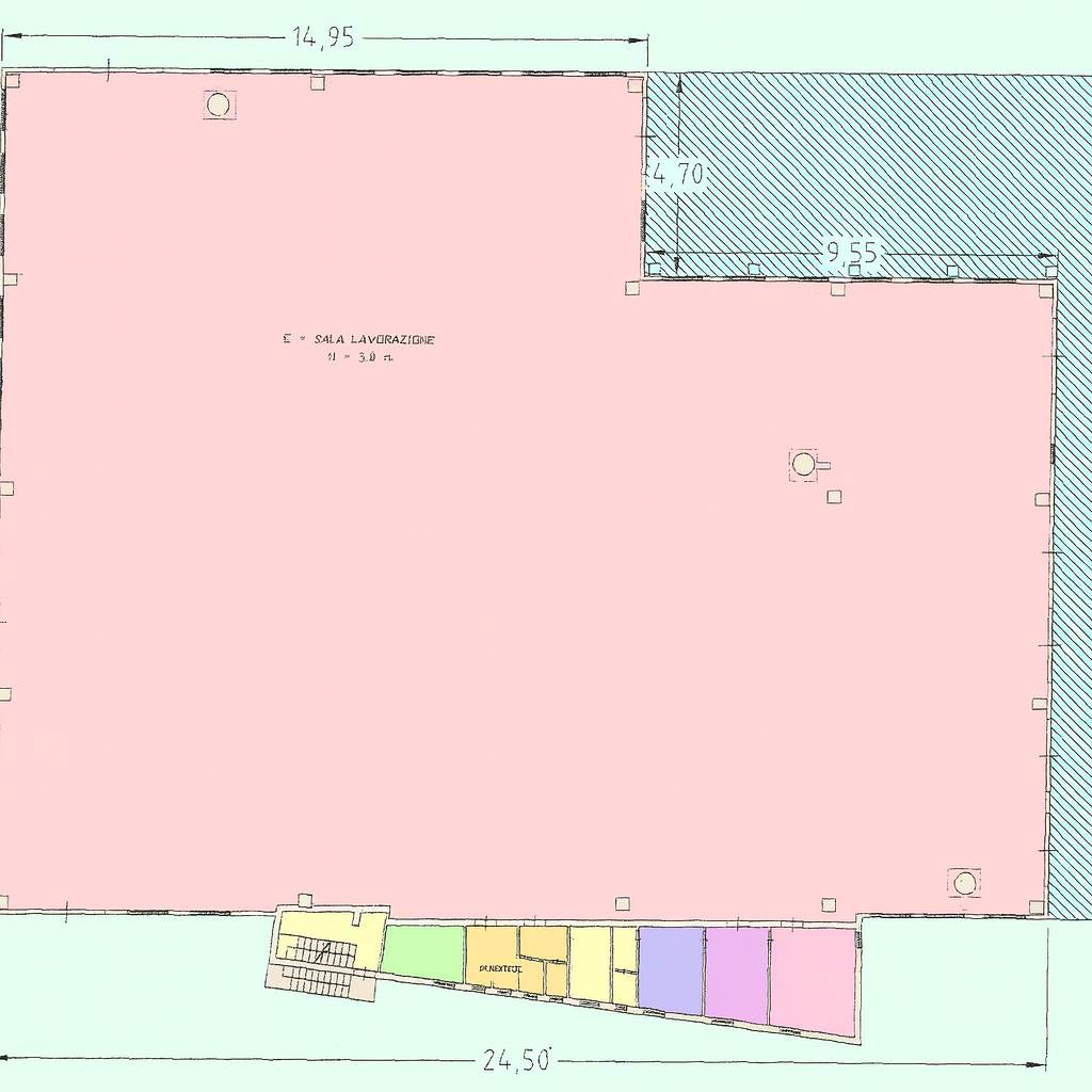 Il complesso è costituito da un capannone di circa 1.500 mq al piano terra, con altezze e profondità adatte a lavorazioni industriali, stoccaggio e movimentazione interna. La zona uffici al piano terra sviluppa ulteriori 200 mq, ideali per reception, amministrazione e sale operative, mentre al primo piano sono presenti 96 mq di uffici direzionali. A completare la proprietà, un’area esterna di circa 4.000 mq, perfetta per mezzi pesanti, parcheggi, logistica e spazi di servizio.