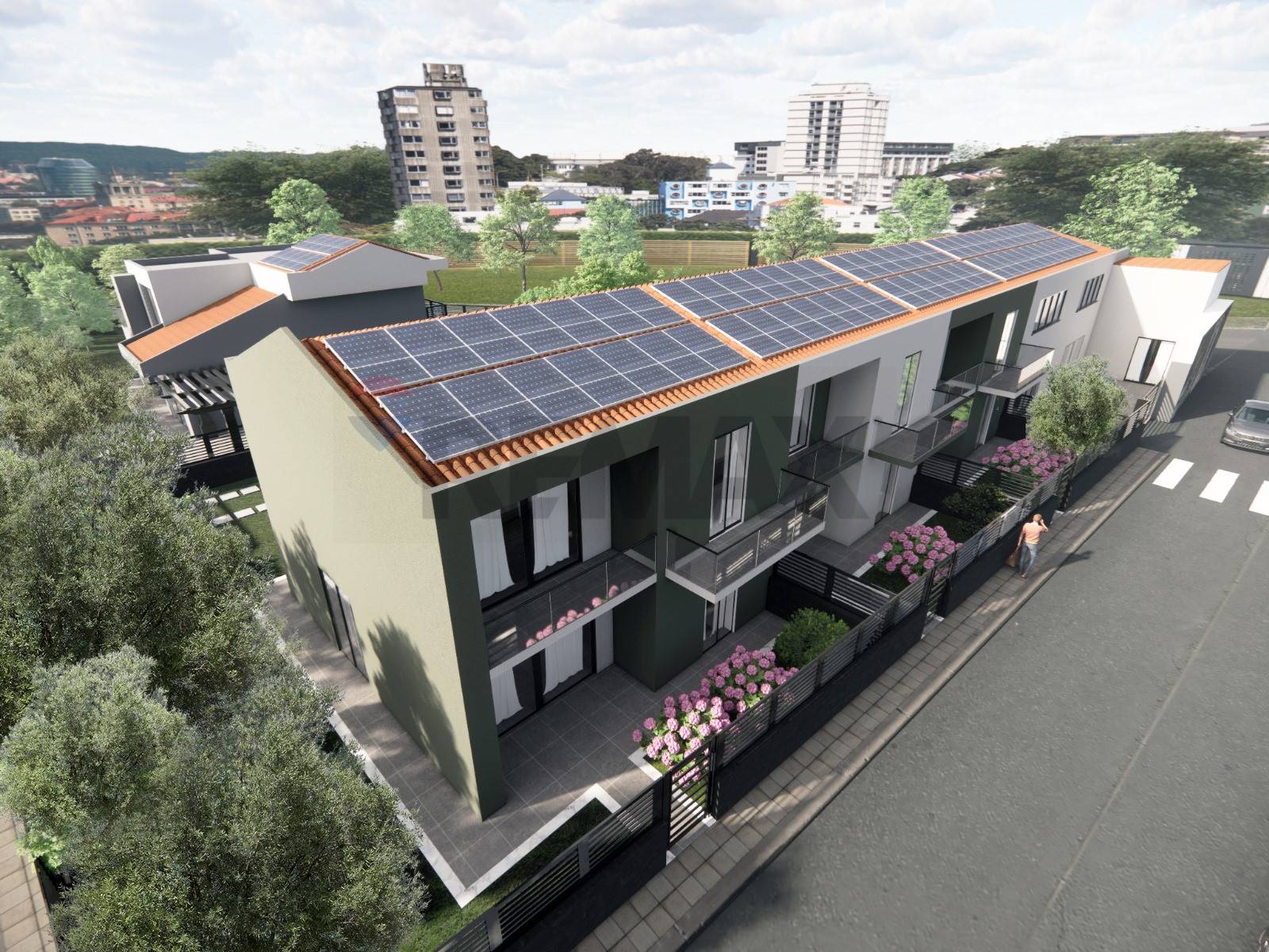 Ogni unità disporrà di impianto fotovoltaico da 4,3 kw con possibilità di ampliamento a 6kw; solare termico da 200 lt con pannello da 2 mq; gli impianti di riscaldamento e raffreddamento saranno ad alimentazione elettrica, le rifiniture interne da capitolato saranno con pavimentazione con piastrelle di gres porcellanato di 1° scelta; il rivestimento della parete della zona cottura sarà con piastrelle di ceramica di 1° scelta; il rivestimento della scala sarà in marmo e/o pietra, con ringhiera e corrimano in stile moderno in ferro; infissi di ultima generazione in alluminio preverniciato a caldo e vetro camera.