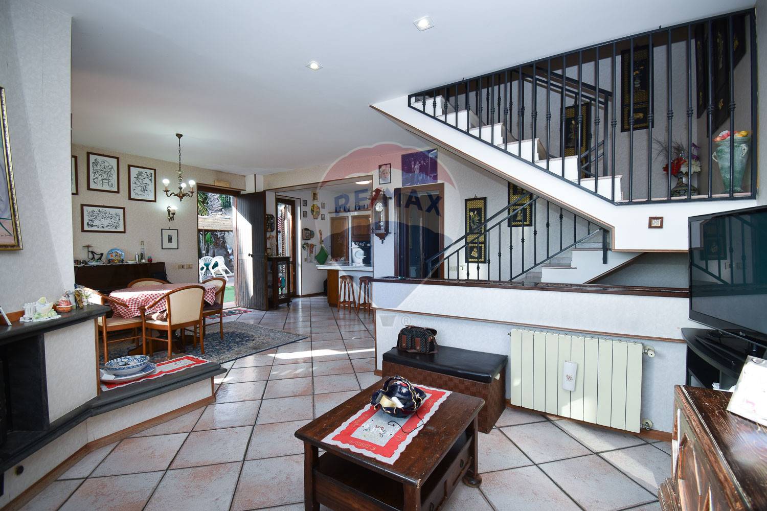 -al piano terra troviamo un’ ampia zona living con camino e vano cottura in muratura, una lavanderia, wc e disimpegno, oltre che un cortile privato, curato e ben tenuto, ideale per organizzare cene e feste all’aria aperta