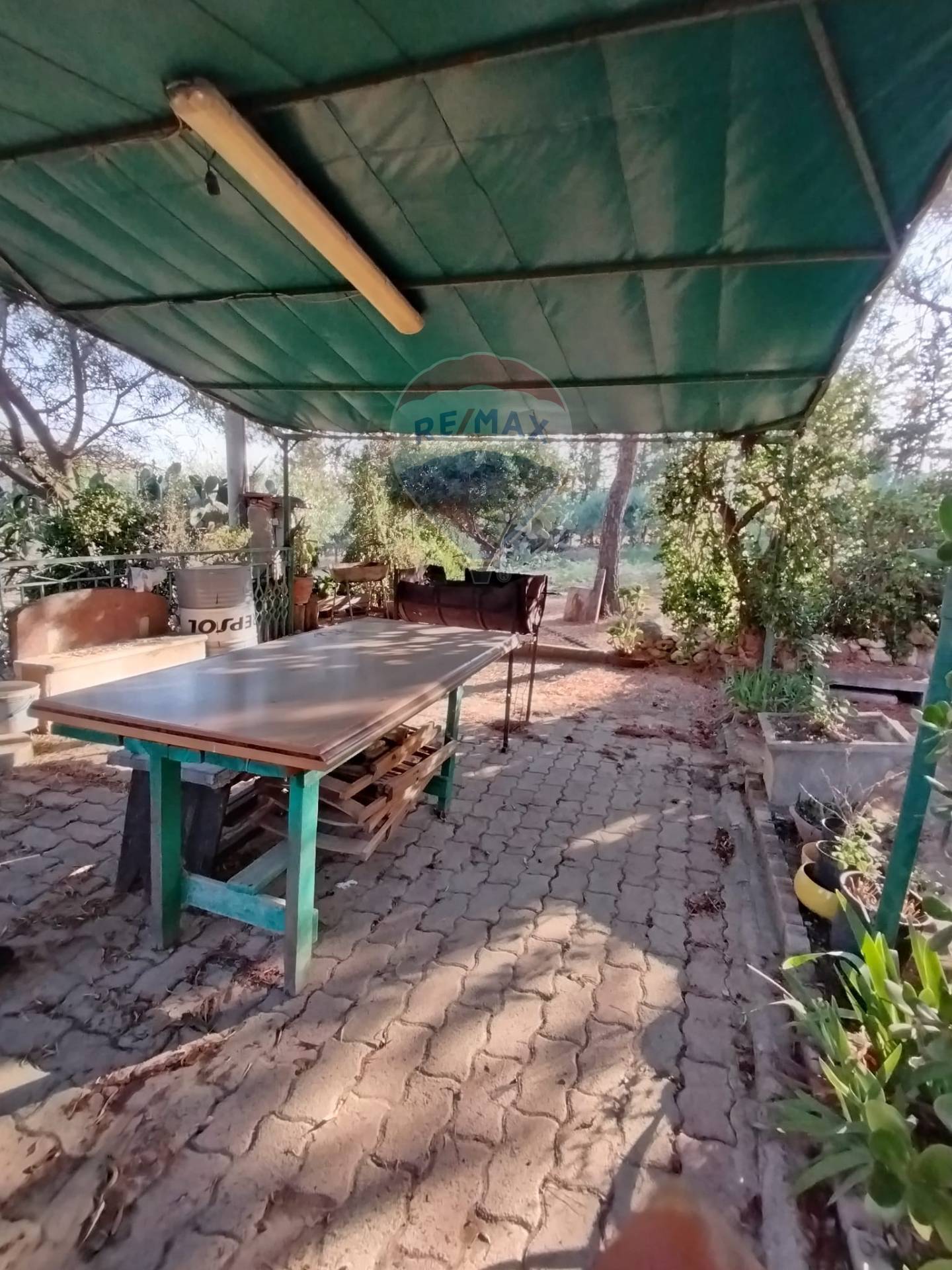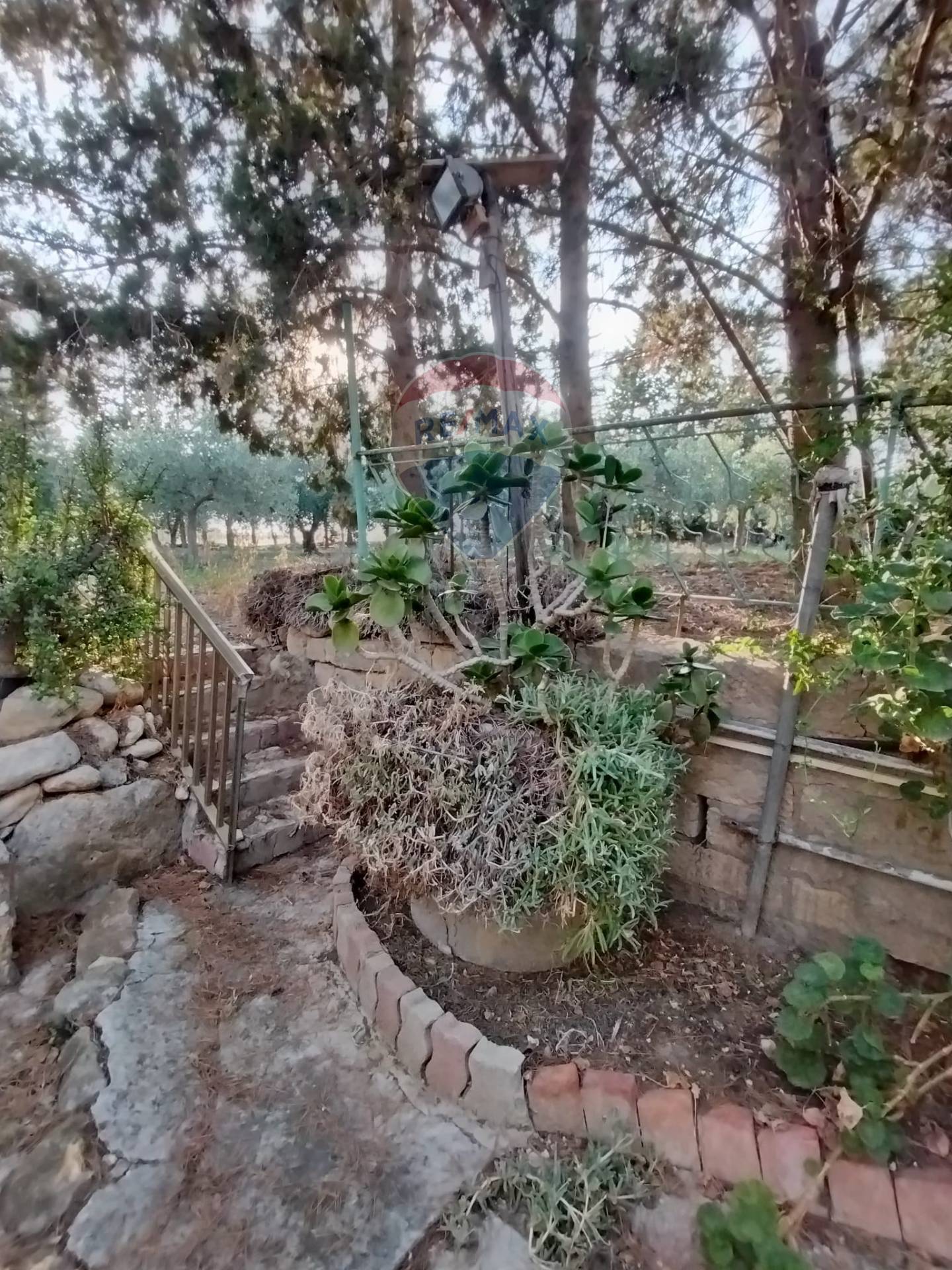 Oltre al giardino, è presente anche un terreno di 4400 mq avente alberi di olive, frutta, pini e fichi d’india.