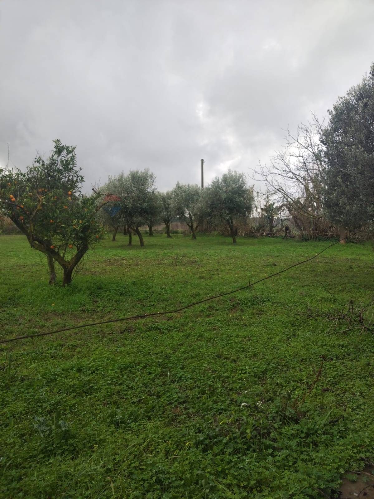 Il terreno circostante tutto pianeggiante è di circa 4500 mq, con due pozzi, sono presenti alberi di ulivo e frutta varia.