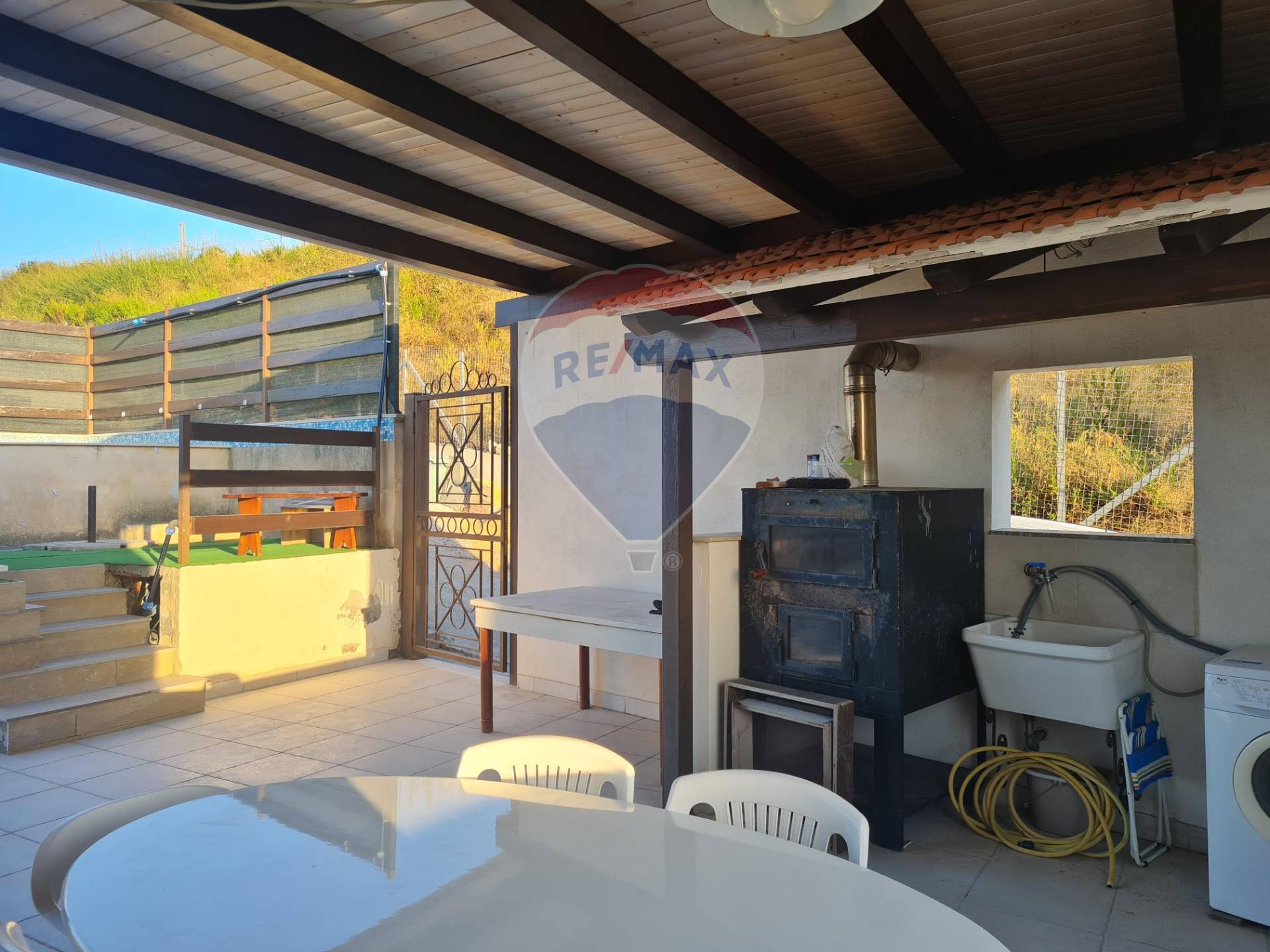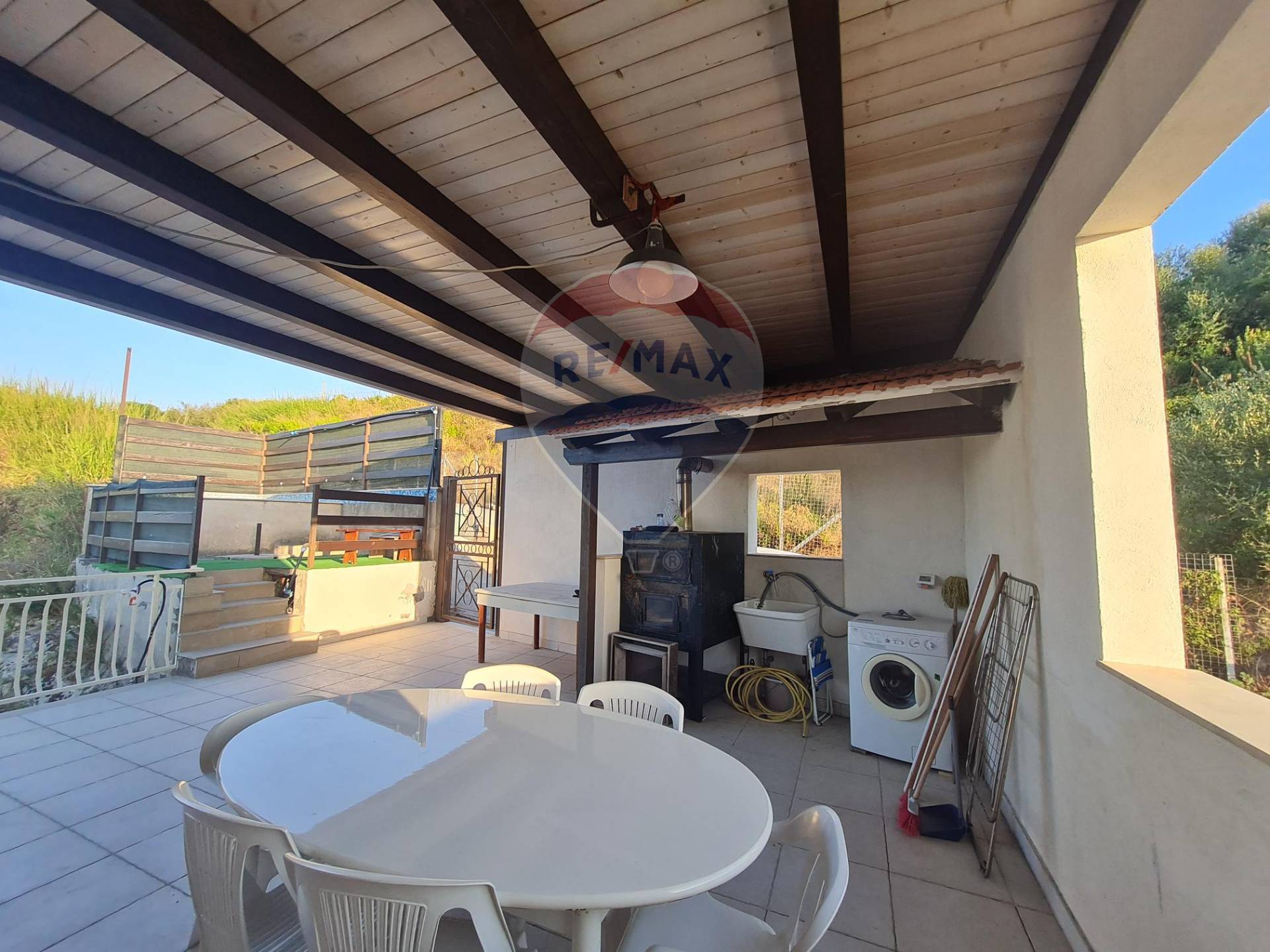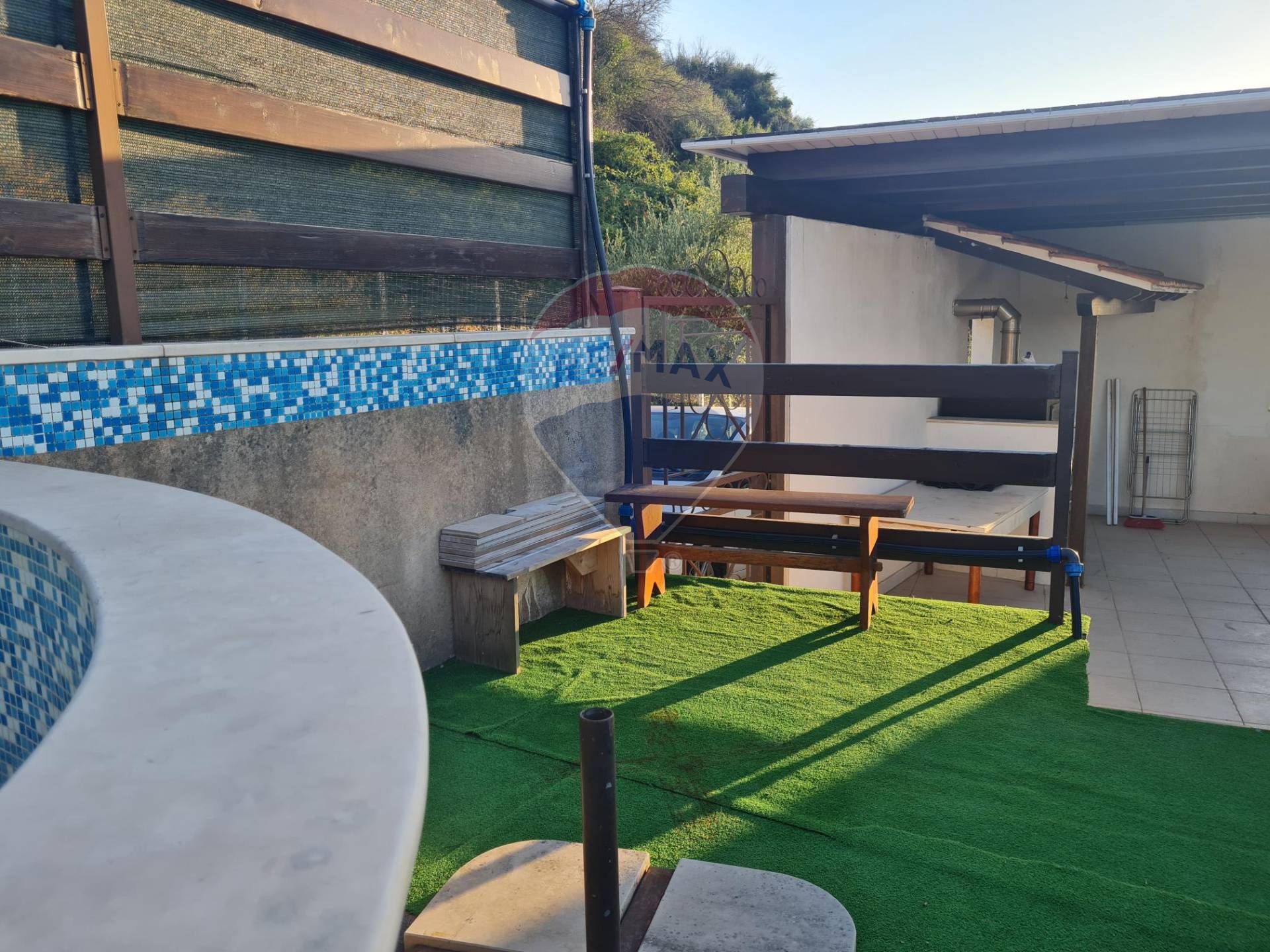 Secondo e ultimo piano troviamo una grande veranda con splendida vista sul mare e vari confort con una piccola piscina in muratura, mentre all’interno è composta da ampia zona giorno, cucinino e bagno.