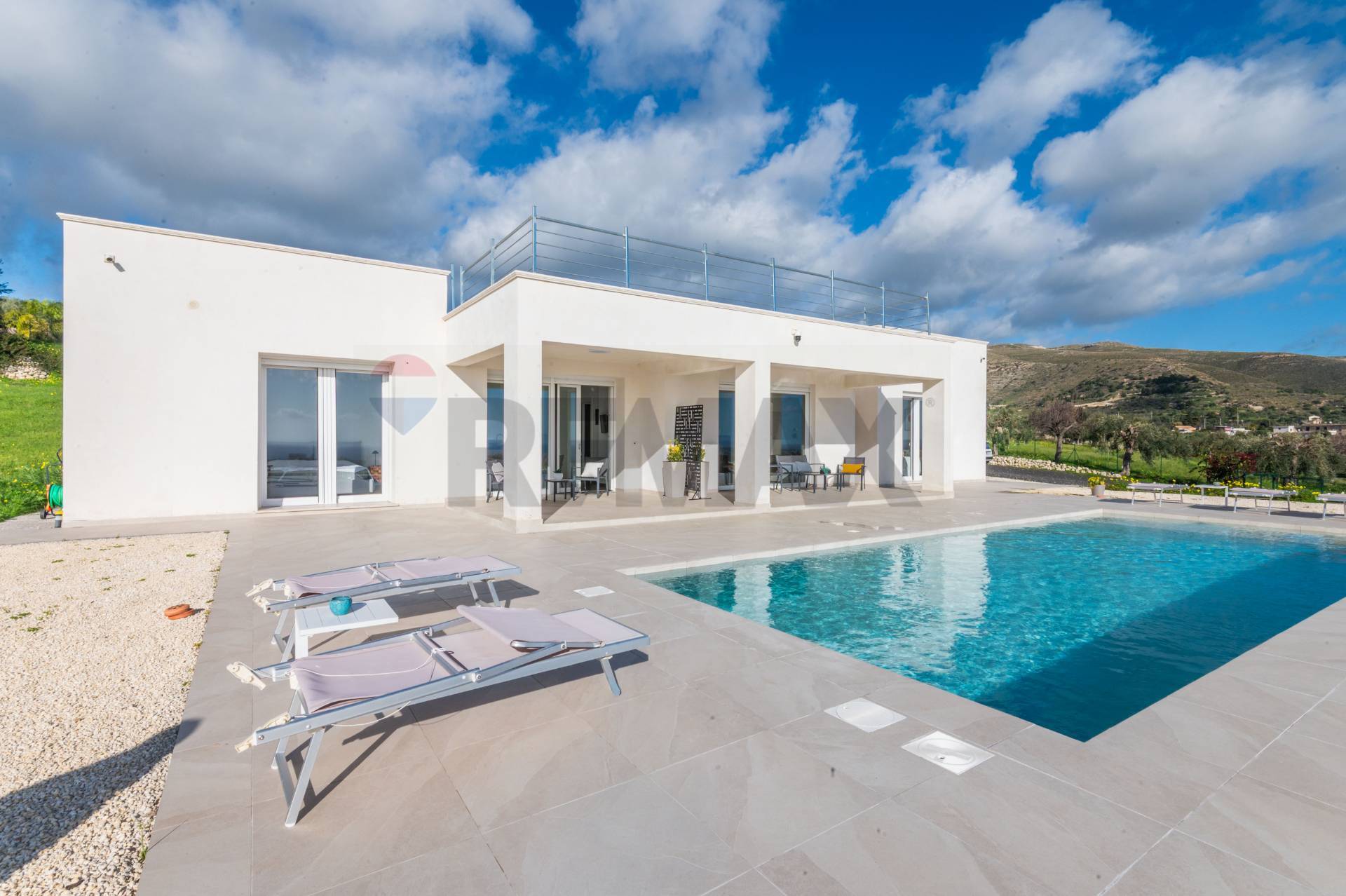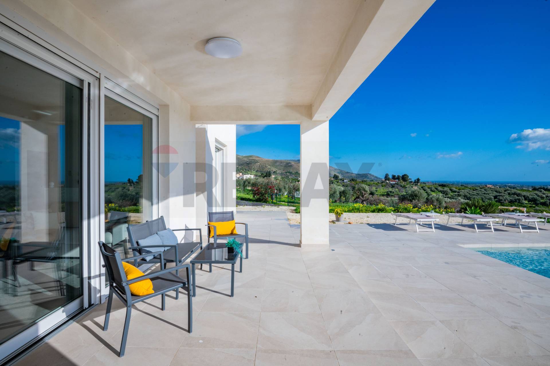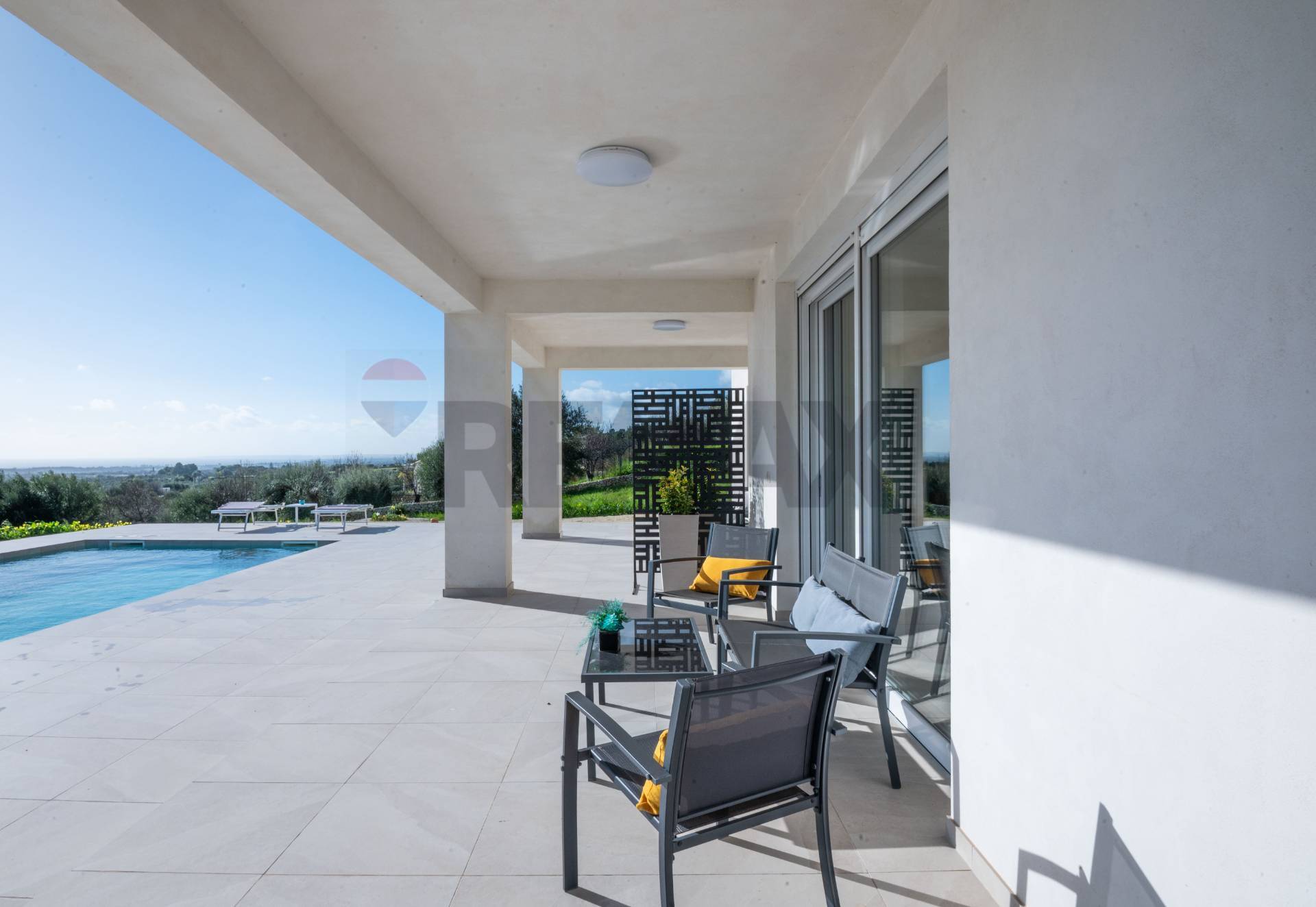 Allesterno, la proprietà offre unampia area relax con piscina, ideale per trascorrere piacevoli momenti allaperto, godere dei tramonti e vivere appieno il clima mediterraneo in totale privacy.