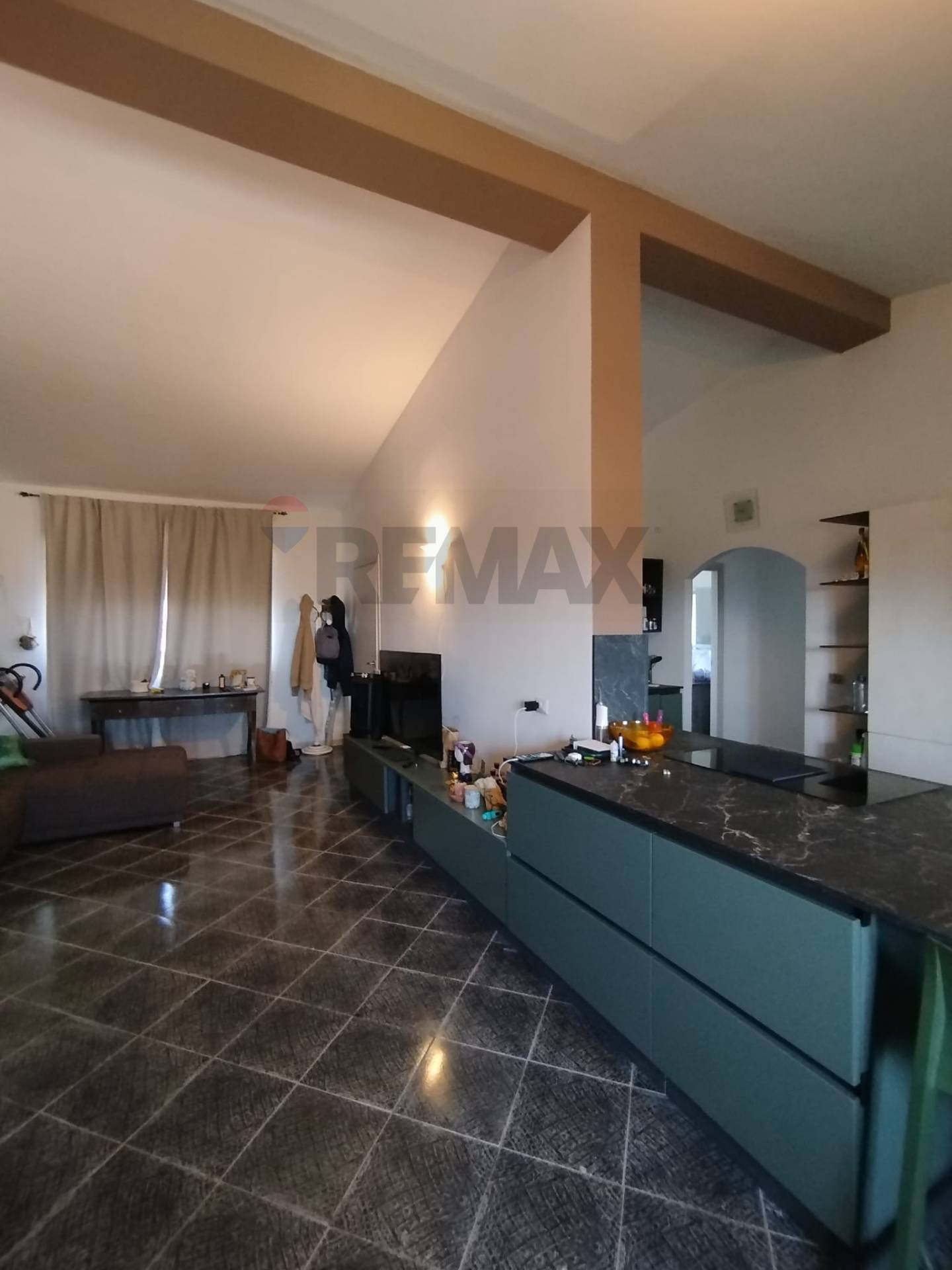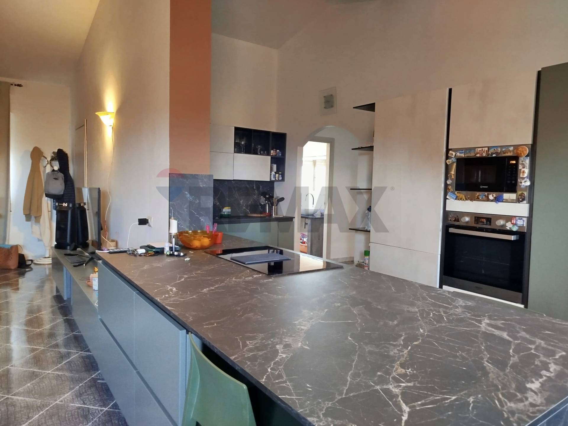 E’ composto da ingresso su open-space in cui troviamo il salotto, la zona pranzo e la cucina a vista, da qui si prosegue attraverso un disimpegno alla zona notte con una comoda camera da letto matrimoniale, uno studio e una seconda camera da letto, infine un unico grande bagno con doccia.